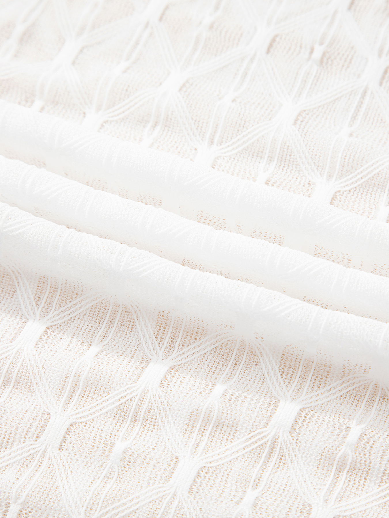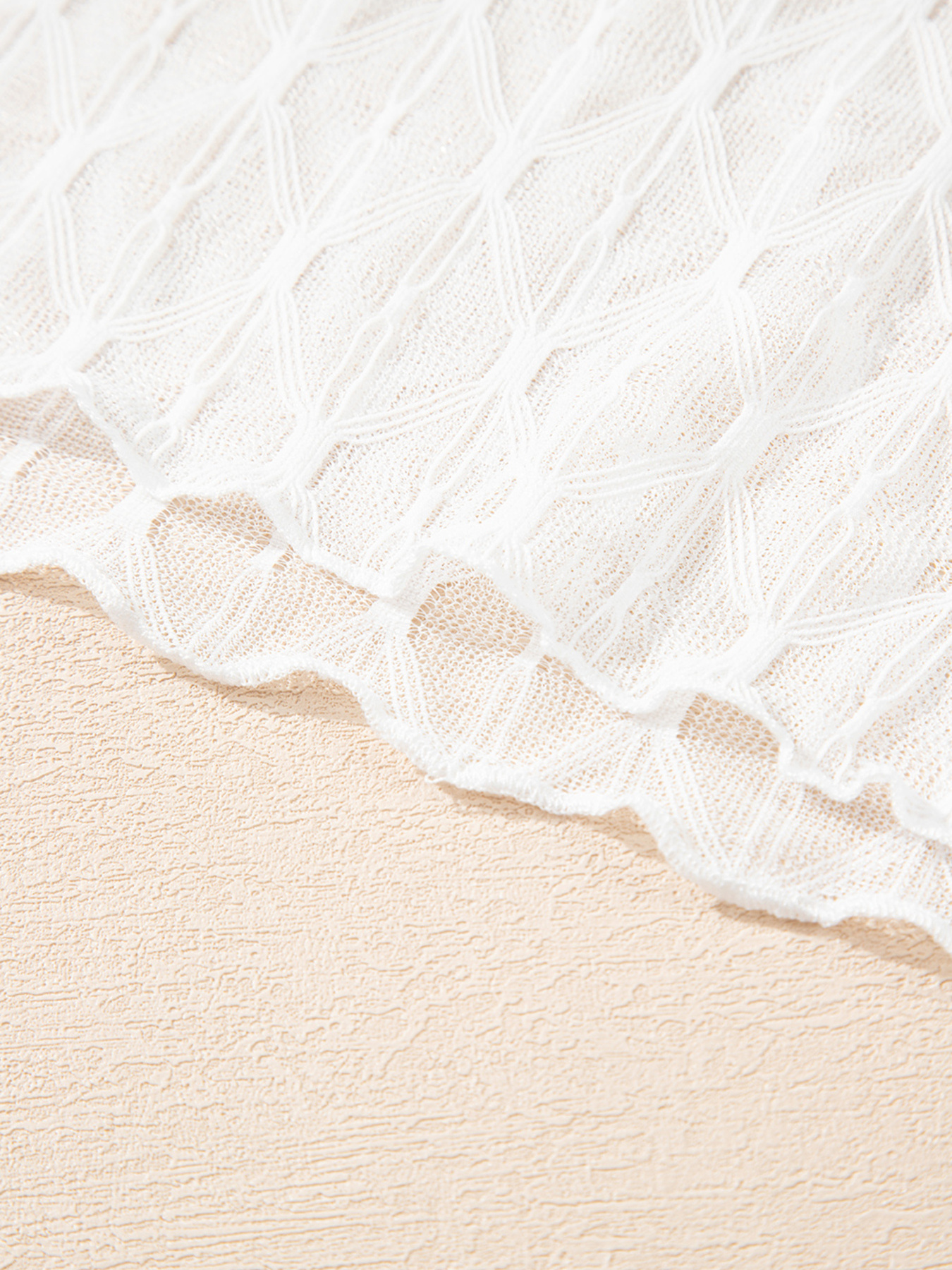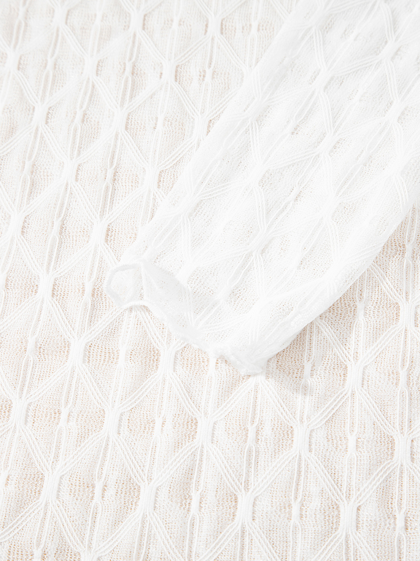 Sheer Mesh Patterned Lettuce Trim Slim Long Sleeve Top