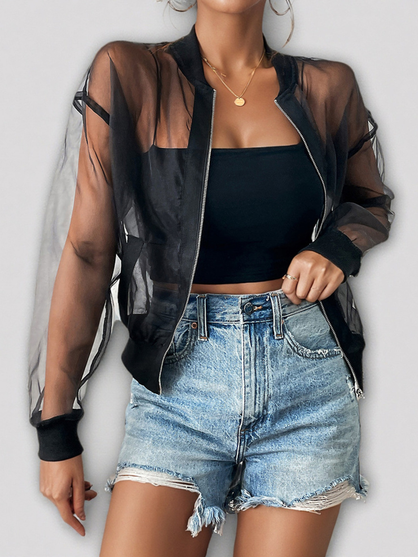 Sheer Mesh Zip Up Jacket