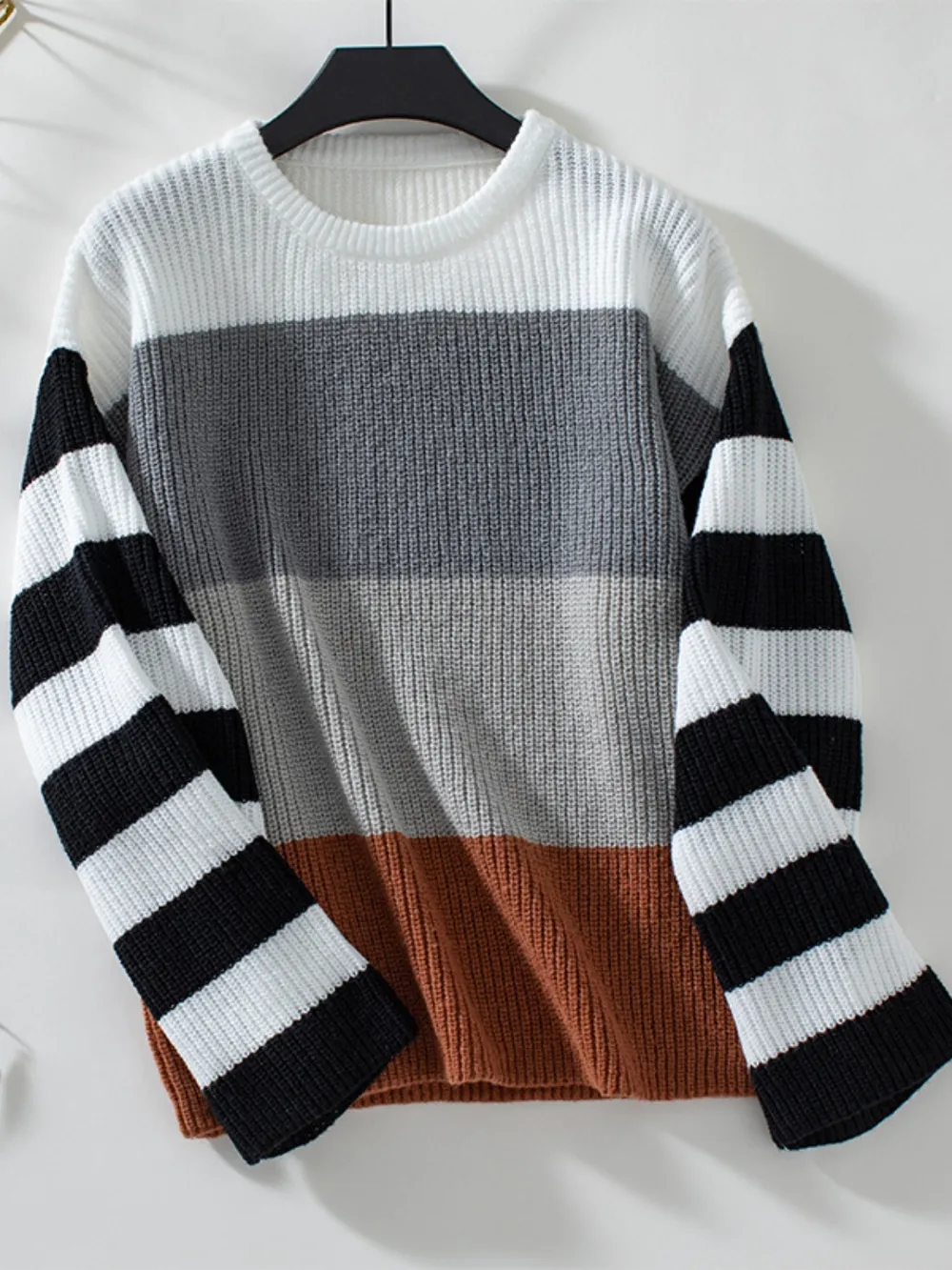 Color Block Round Neck Long Sleeve Sweater