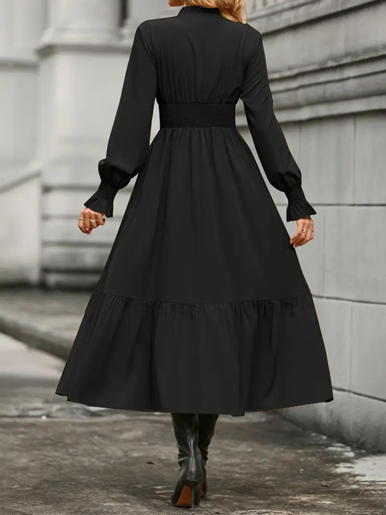 Notched Long Sleeve Tiered Dress