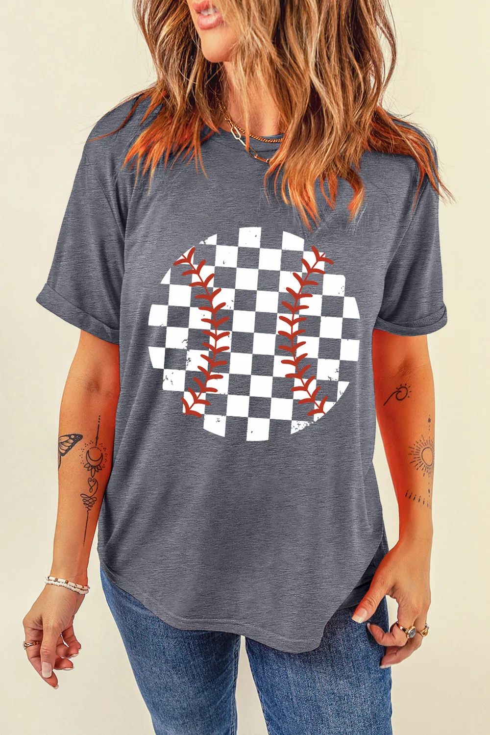 Checkered Graphic Round Neck Short Sleeve T-Shirt