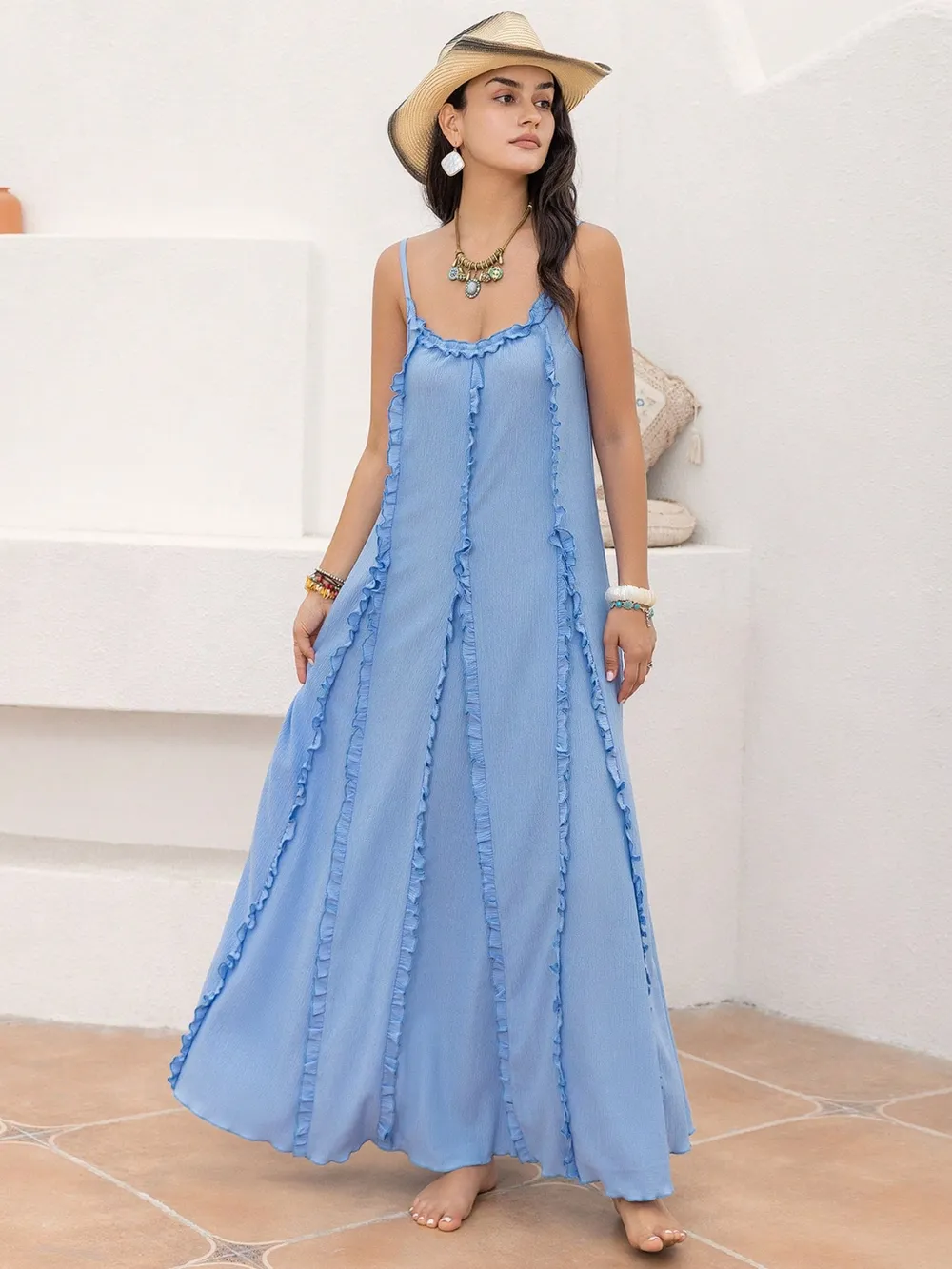 Frill Scoop Neck Maxi Cami Dress