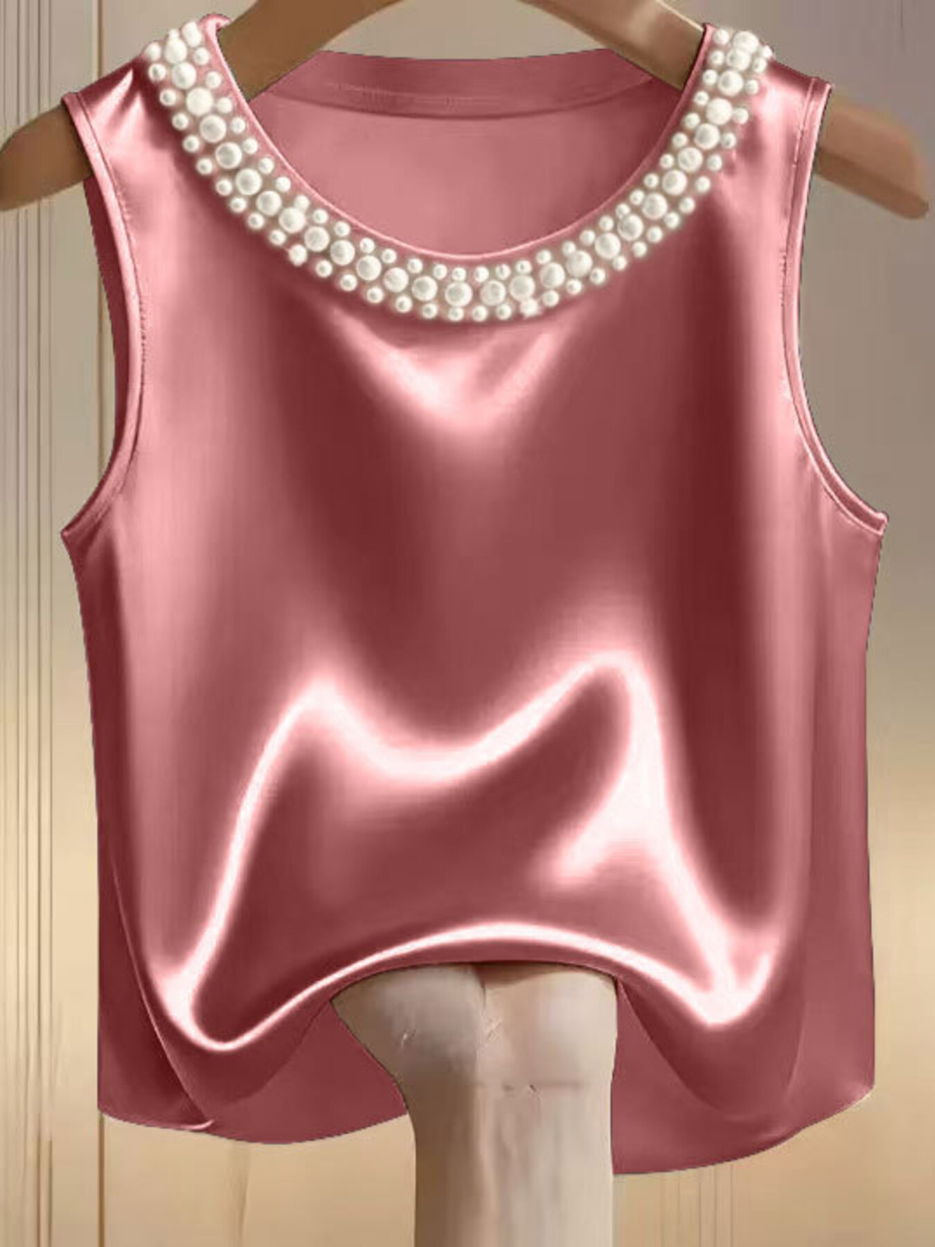 Pearl Embellished Satin Tank Top