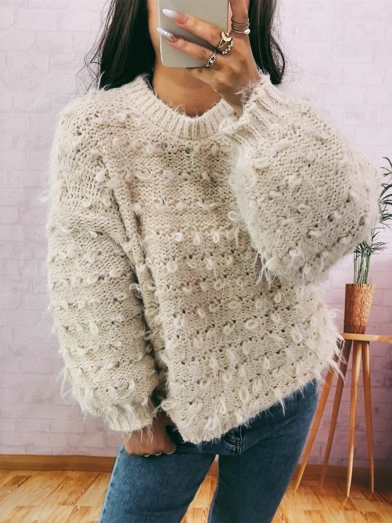 Chunky Round Neck Long Sleeve Sweater