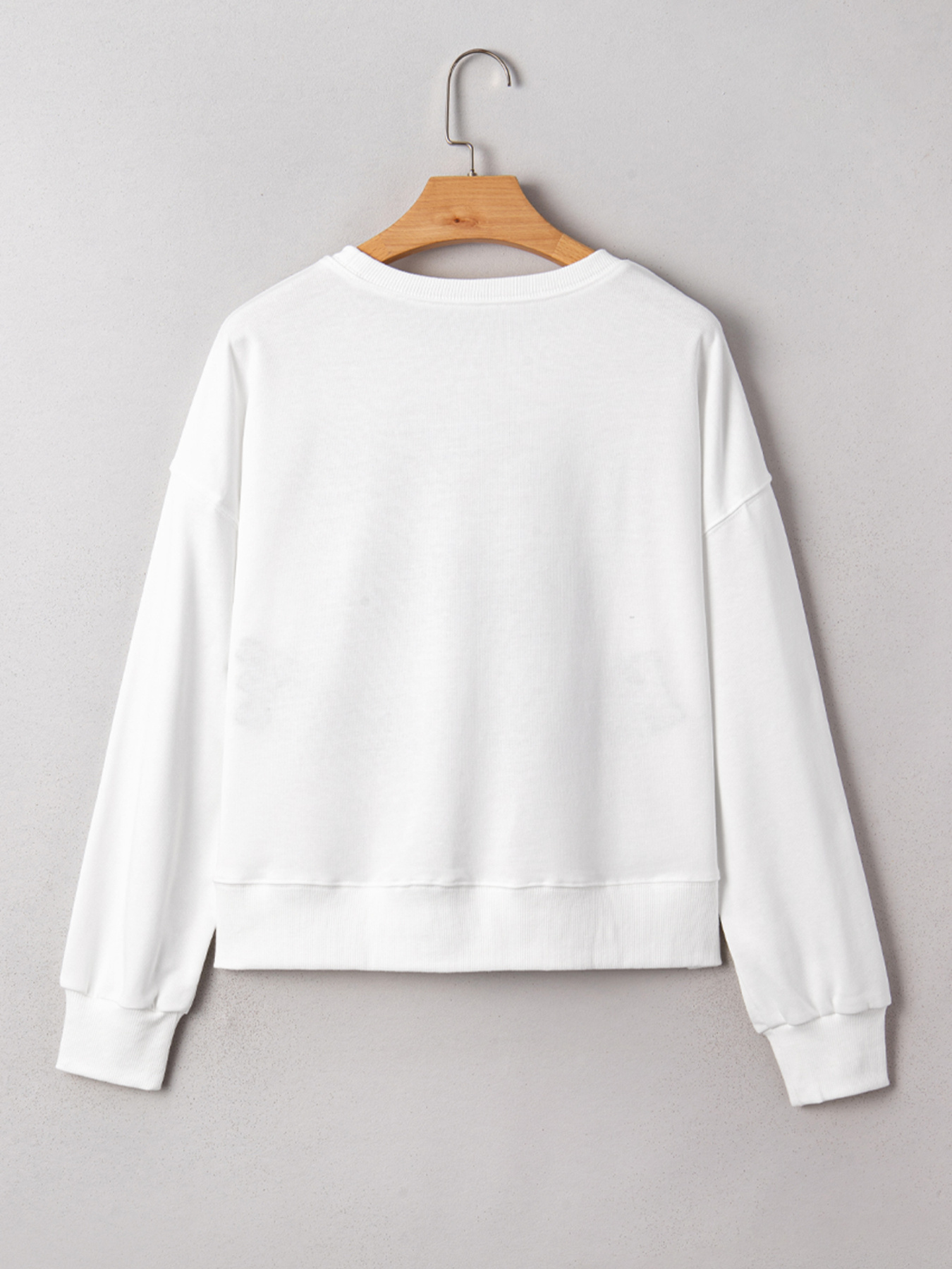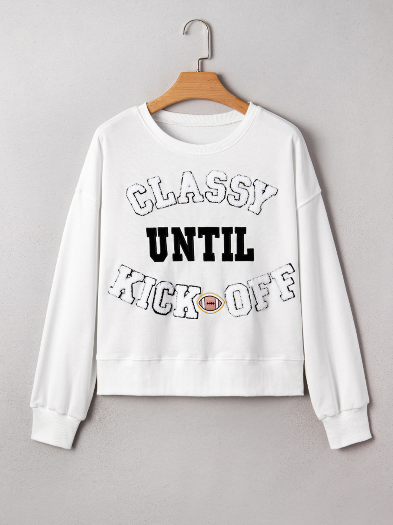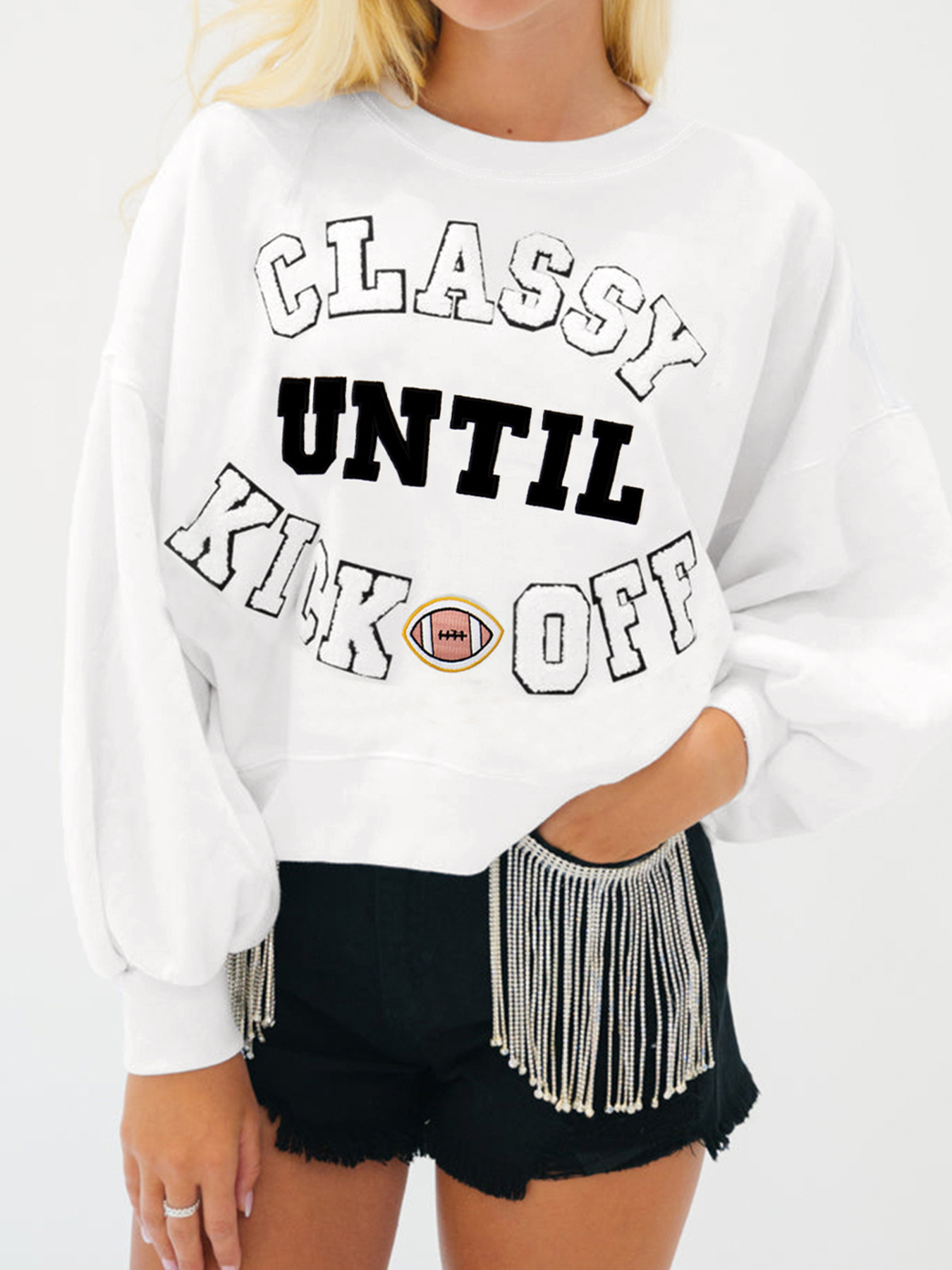 Classy Until Kickoff Plush Letter Patched Loose Sweatshirt