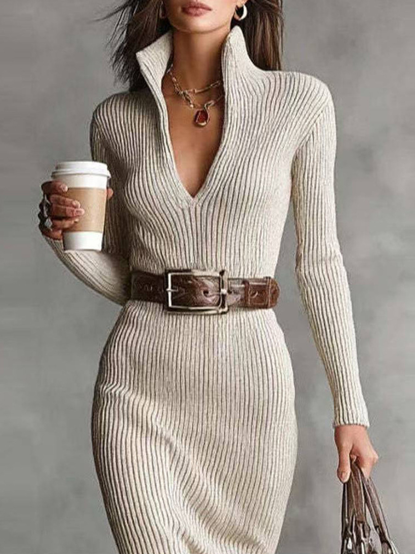 Elegant Ribbed Knit Turtleneck Midi Sweater Dress