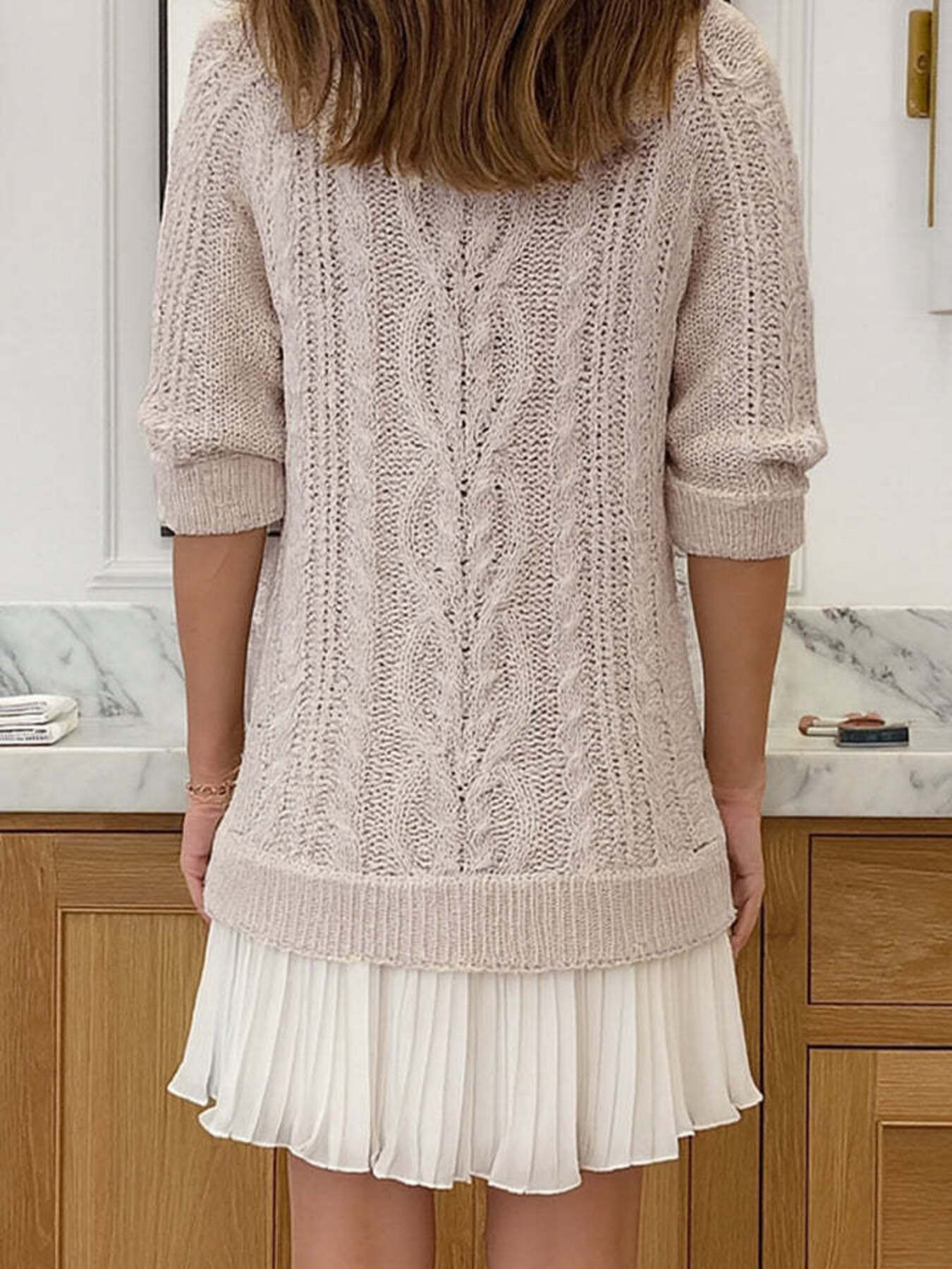 Full Size Cable Knit Pleated Hem Sweater Dress Plus Size
