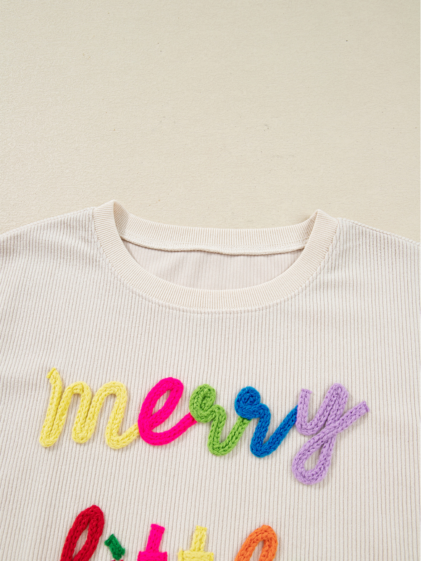 Merry Little Thing Corded Letter Graphic Ribbed Sweatshirt
