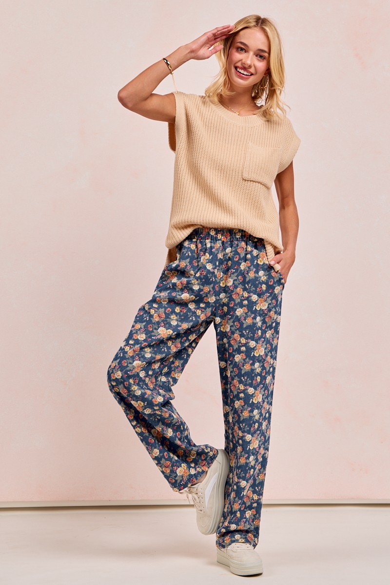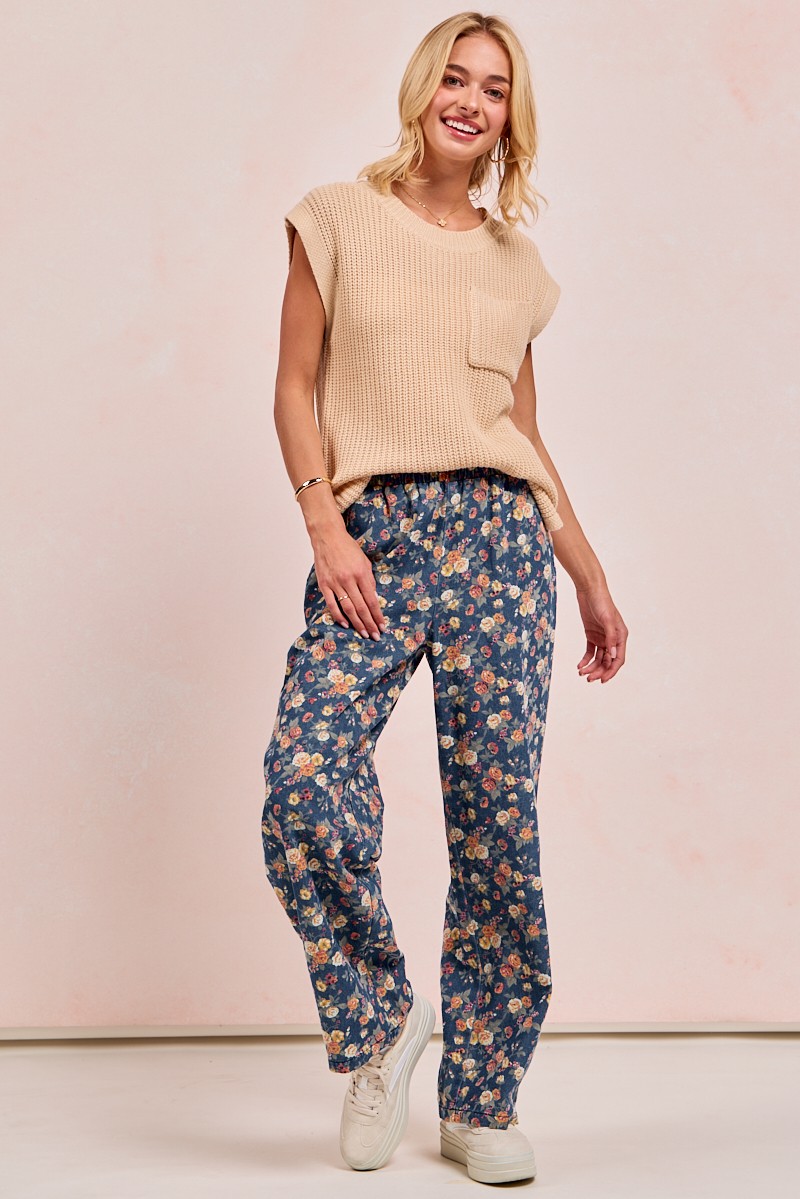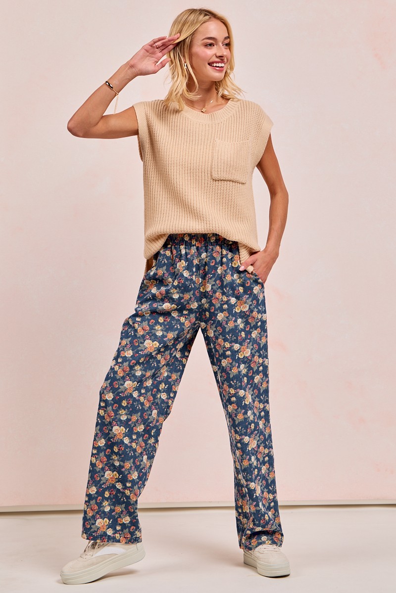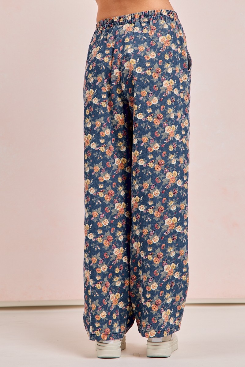 Bibi Washed Floral Print Wide Leg Jeans