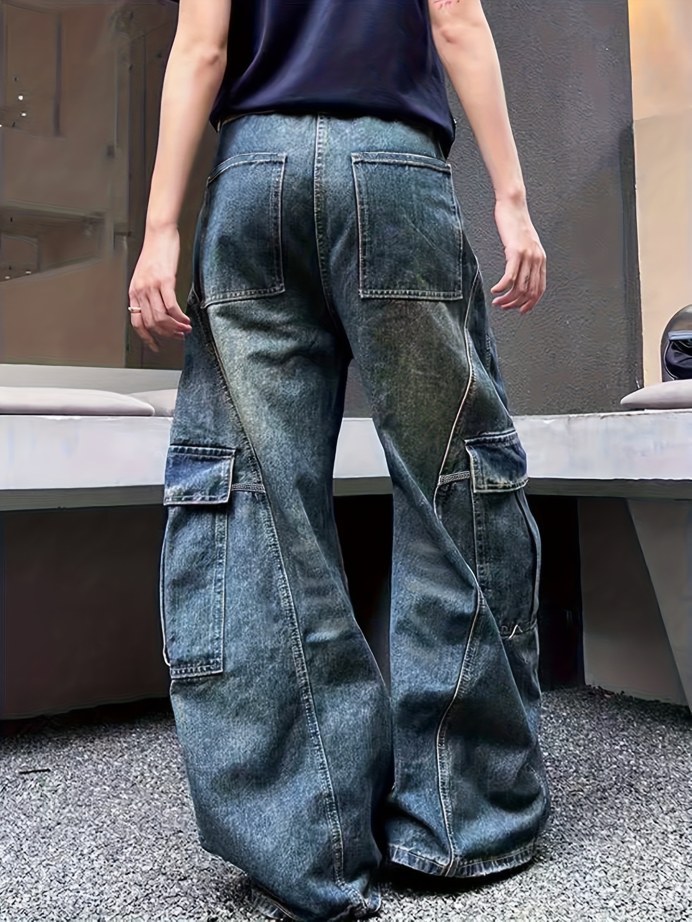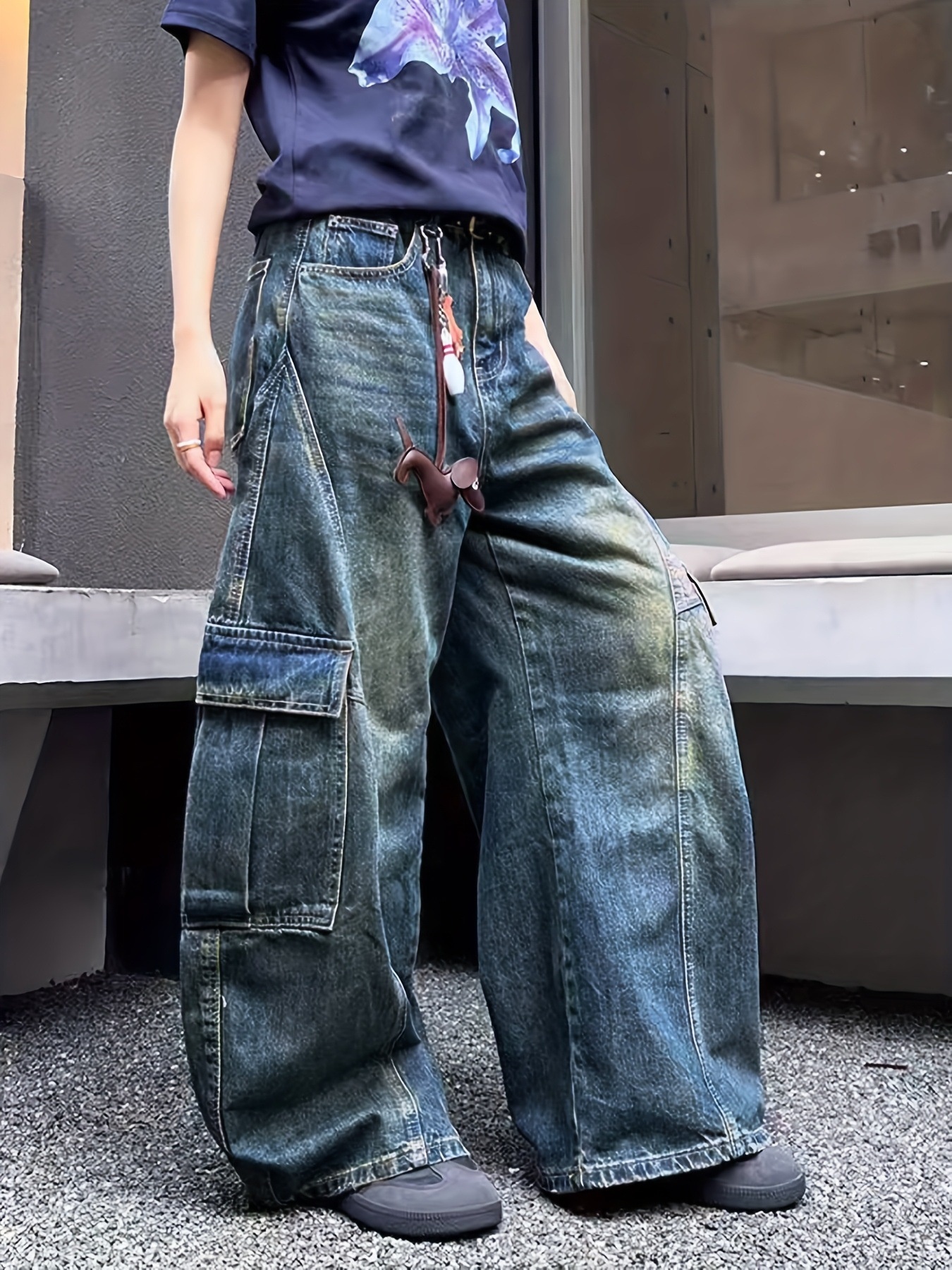 Vintage Wash Wide Leg Cargo Jeans